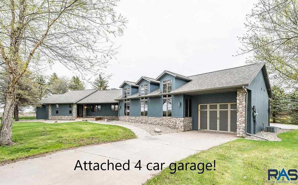 Fantastic family-friendly sprawling ranch home with so much space inside and out! Offering 4500 square feet finished and a remarkable amount of storage plus an acre of tranquility. 6 bedrooms, 5 bathrooms, many living areas, home-schooling room, office, and an open floor main where everyone is included. Spacious eating area, fireplaces, and an 15x30 east-facing private deck with a peaceful backyard surrounded by trees. This home is set-up for lots of activity; whether its family, guests, or entertainment. There is a drive-through garage plus a huge 5 car garage (epoxy floors and heaters), and the ceilings are tall enough for RV storage. There are two bedroom suites and a laundry room on main floor. Easy working kitchen. Convenient location with a short 5 minute drive to Brandon, nature areas, Sioux Falls, major shopping, and dining. County living with the benefit of the city and just a few neighbors. Many, many extras; must see it to appreciate!
