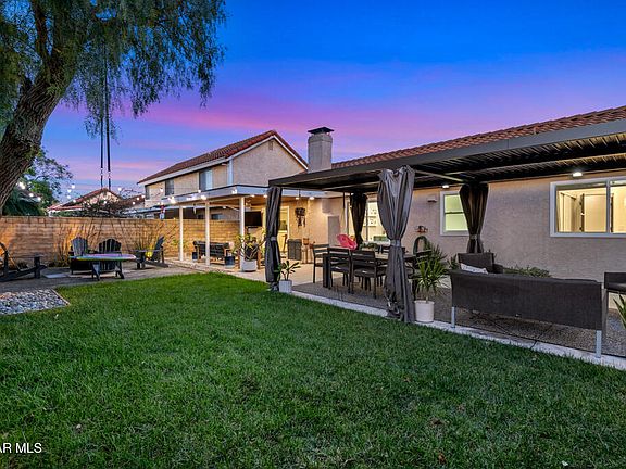 Eye-catching under-eave govee lightingNew flooringCeiling fanNicely refinished fireplaceWhole house fanRecessed lightingFully roofed patio cover