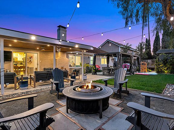 Welcome to this stunning single-story 3-bedroom, 2-bathroom home offering 1,238 square feet of beautifully updated living space on a 6,098 square foot entertainer's lot — no HOA and tucked into a fantastic, quiet Moorpark neighborhood. Thoughtfully upgraded throughout, this home features new flooring, new windows and sliding glass doors, and new solid wood interior doors, creating a fresh, modern feel. The living area is anchored by a nicely refinished fireplace, complemented by all-new lighting with modern dimming switches throughout the home. Outside you will find an entertainer's dream backyard, complete with a fully roofed patio cover featuring an outdoor TV, recessed lighting, speakers, ceiling fan, and wiring for heaters — perfect for year-round enjoyment. The yard also includes all-new landscaping and concrete, privacy hedges along the rear, a kids' play area, a new shed, and eye-catching under-eave Govee lighting. Additional highlights include a whole house fan, a direct-access two-car garage with ample storage, and additional RV or car parking along the side of the home. Conveniently located near shopping, restaurants, multiple parks, and Moorpark High School, this move-in-ready home truly offers the best of comfort, style, and location. Don't miss this exceptional single-story opportunity in the heart of Moorpark.