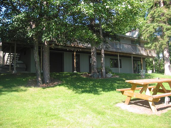 2 story walkout, brick gas fireplace in living room, stone Wilkening wood burning fireplace in downstairs family room, 8X60 ft. deck along length of house, 24X30 wood insulated, heated garage, 2 car metal insulated, heated garage with lean-to, tuck under18X24 garage for toys, mowers, workshop, etc., 16X20 guest cabin needs work, used for storage now, 133 Ft lakeshore