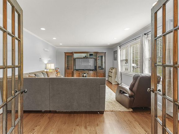 - RoomLivingRoomFeatures: Recessed Lighting, French Doors, Floors-Hardwood, Molding