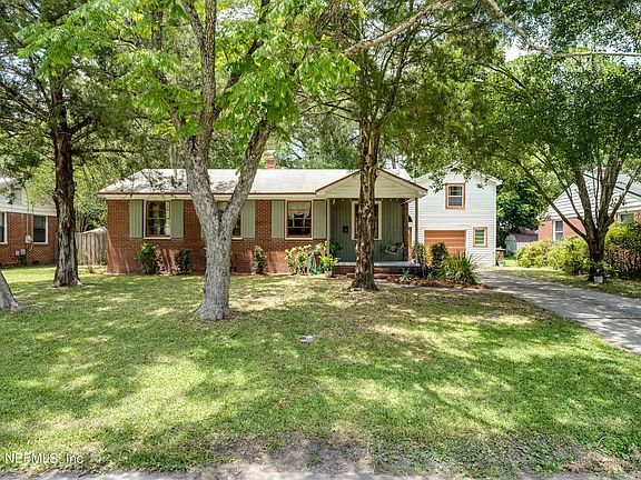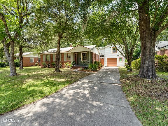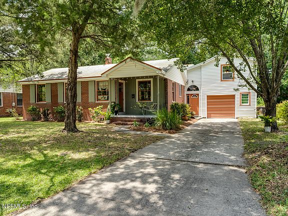 For the perfect combination of Murray Hill charm and modern improvements, this sweet home will be sure to impress! The brick front, the cute shutters, and the front porch (+ swing) will welcome you right in! Head inside to find original hardwood floors, a living room opening into a flex space that can be used for playtime or dining, and an updated kitchen. Stainless steel appliances, new backsplash, and ample cabinetry make this a beautiful place to prepare meals. Two bedrooms share a bathroom and a primary suite features a massive bathroom with dual sinks and great storage. One of the best parts of this home is the secondary living space, ideal for entertaining with a focal point fireplace. A bonus bedroom with en suite half bath is situated above the garage--absolutely perfect for a home office! Fully fenced backyard including a shed for extra storage. This home is just a few blocks to all of the shops, breweries, restaurants, and fun happenings of Murray Hill. Convenient location to access Roosevelt Ave to get to NAS Jax easily.