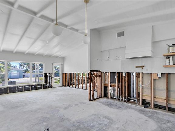 Under contract-accepting backup offers. Short Sale. Mid-Century Modern potential awaits just steps from the Gulfport Marina! 4811 Del Rio Way S offers an incredible opportunity to restore a beautifully designed home in one of Gulfport’s most desirable neighborhoods. This 3-bedroom, 2-bath single-family home was recently impacted by flooding and has been gutted, providing a clean slate ready for your vision. The vaulted ceilings with exposed beams, large picture windows, and signature mid-century lines remain intact, offering a solid foundation and distinctive character rarely found today. Major updates include a 2022 roof, impact-rated windows and doors, and updated plumbing. Set on a beautifully landscaped lot with tropical curb appeal, the home is ideally located near the Gulfport Marina, Clam Bayou Nature Park, and the vibrant downtown arts district known for its waterfront dining and local charm. Bring your contractor and imagination—this property is ready to become your next Gulfport retreat.