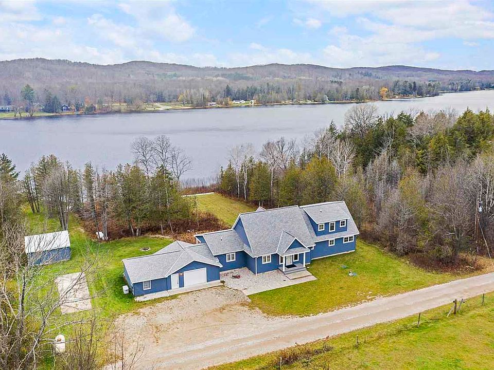 Newer four bedroom and two and a half bath home, located on the south east side of Six Mile Lake offering evening sunsets. Beautiful interior, open floor plan and west facing windows. Spacious kitchen with flowing floor plan into living and dining area. House living area is centered around a gas fire place. Attached one and a half car garage and game room along with a two car detached garage. The newer portion of the house was built in 2015. Home sets on 1.1 acres with 196 feet of lake frontage. Nice lawn surrounding home with scattering of trees. The lawn slopes slowly towards the lake.