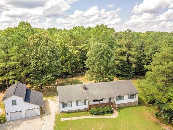 You will enjoy the privacy of 4.25 + - Acres Located in Rural A-1 Zone Charles City County. Large Living Room, Brick Fireplace with New (2019) Gas Logs. Eat-In-Kitchen has Cabinets Galore, French Door to Back Yard. Master Bedroom with Walk-in-Closet & 1 Additional Closet, Master Bath - Tile Floor, 2 Additional Bedrooms. Hall Bath with Tile Floor and Linen Closet, and Half bath off the Laundry Room. Partially finished Den or Man Cave in the Attached Garage which has Heat & AC and New (2019) Gas Fireplace and Logs. There is a Two Car Over Sized Detached Garage with an Office / REC Room above. Rinnai Hot Water, Generator Hook-up, Water Filtration System, Horses allowed (please verify with Charles City County). Don't miss this opportunity.