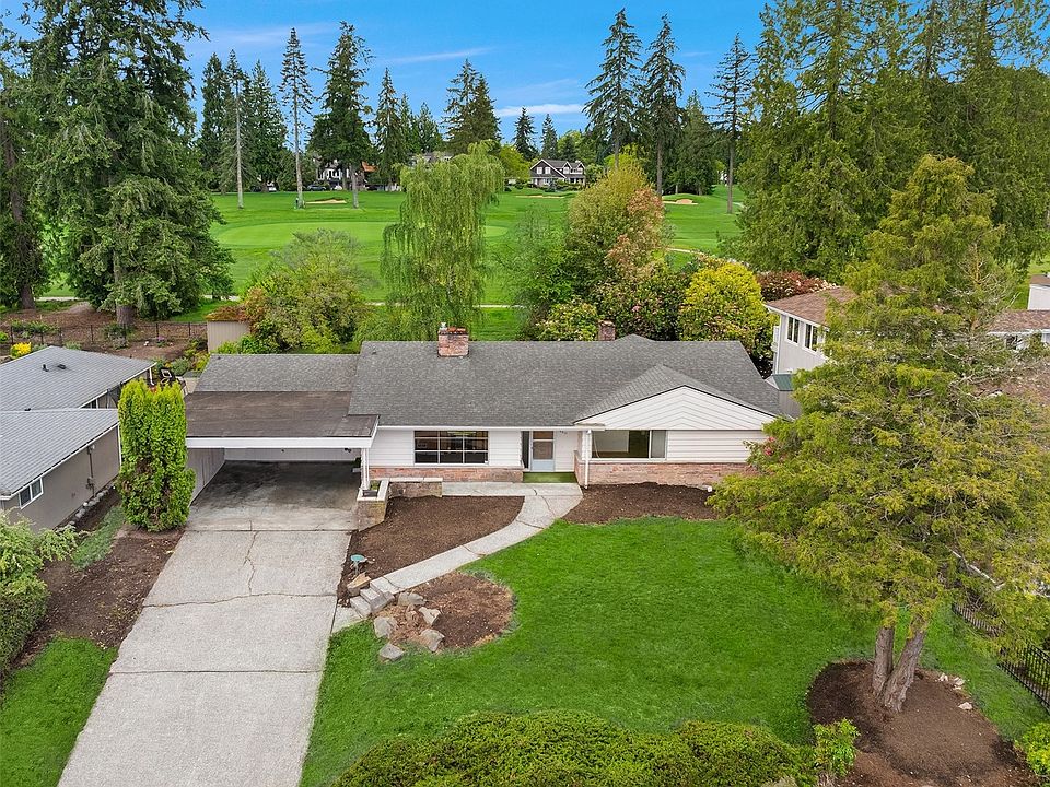 Perched near the peak of the coveted Inverness neighborhood, this rambler sits proudly adjacent to the 8th tee box at Sand Point Country Club with nearly level access to the course. Build new or remodel with confidence-inspiring view protection covenants perched on a quiet street with buried power lines. This is a rare opportunity with 2,320 square feet of single-level living space, sited on a large 10,400 square foot golf course lot with approximate 79’ x 130’ dimensions. Sweeping views to the North and Northwest over Lake Washington and the Cascades, plus Southern exposure over SPCC. Bring your architect, designer, and imagination, or lightly update as desired. So much investment potential and one of the few view ramblers in Seattle.