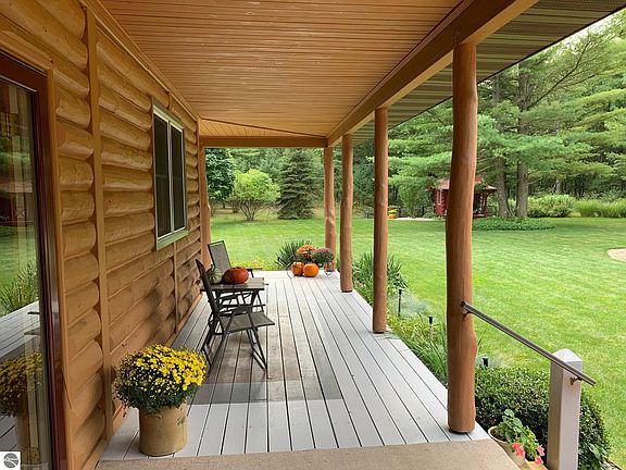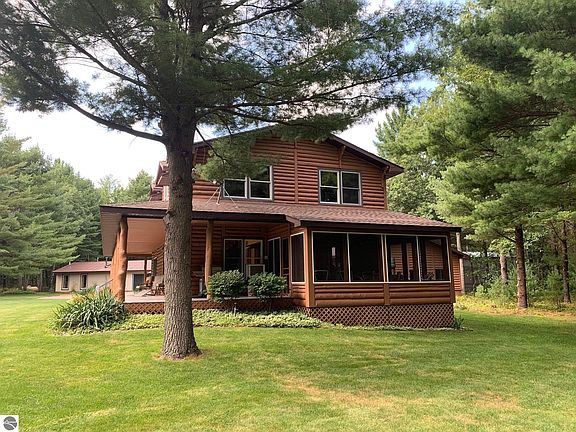 Woodworking delight! This custom home has the beauty and pride in every board. Sellers had used the wood from the property for the finishes and trims. This 3 bedroom, 2 bath home sits in a pristine location with 39 acres of privacy which is adjacent to hundreds of acres of the Manistee National Forest. Enjoy the warm finishes of the home from the inside or out. A three sided wrap around porch leads you right to a 18' x 12' three season room. The open floor plan leaves plenty of room for the family. A jacuzzi tub and sauna makes for a great way to end your day. The craftsmanship of the home started in the 28' x 60' wood working shop which also has a full kitchen, 2 bedroom, bath and living area. Other buildings include a 30'x32' detached garage, 14'x 40' roofed building for your RV and 12'x16' area for your wood working materials, and a great playhouse for the kids or grandkids. The landscaped yard does have an irrigation system and a fire pit to enjoy the outdoors. If you are looking for a great home with all the finishes in a great area you will need to see this one first.