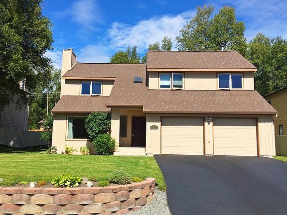 Fantastic Sportsmen's Point home-beautifully landscaped & perfectly positioned in the neighborhood.This home not only sits in a cul-de-sac, it also backs to treed school district land for privacy. Interior features hardwood floors,new carpet,new windows & updated kitchen & baths w/quartz counters and SS Appl.New roof in 2010.New water heater.Lg rear deck & shed.All BRS upstairs+a loft office nook. Walking distance to top rated Kincaid Elementary School and its new community playground. Quick access to Kincaid Park and trail system. Awesome location and a great buy!