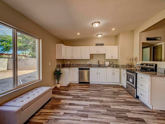 Spectacular 4-bedroom 2 bath home just minutes away from Davis Monthan. Great room off kitchen make this home perfect for entertaining. Tastefully remodeled with new kitchen, new flooring, new carpet, new bathrooms, new lighting and ceiling fans. Kitchen features new white shaker style cabinets, granite counter-tops and stainless-steel appliances. New vanity cabinets, new mirrors & new custom tile in bathrooms. NEW dual pane windows, NEW roof with warranty, NEW HVAC and more. Large lot with space for an RV or trailer behind a gate. Nothing to do but move in!! Agent/Owner.