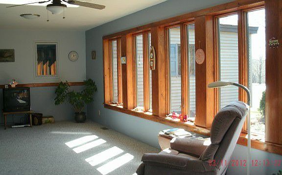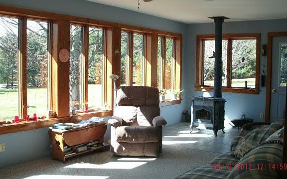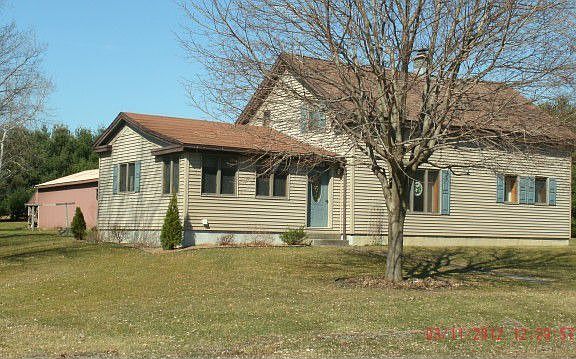 This wonderful home is larger than it appears from the road! When you enter from back covered porch/deck enjoy the walk-in closet & storage room. Welcoming country kitchen with breakfast bar. The 12x30 sunroom is enjoyable in all seasons w/ceiling fan and a soapstone wood stove, keeping the house toasty warm. Then into lvgroom, family rm, wood paneled enclosed porch, 2 baths, 1st flr. bdrm w/ 2 closets, and 4 rms up. The pole barn has 2 garage spaces and room for outside toys. Lushly landscaped yard w/evergreens, perennials, berry bushes. New furnace, water heater. A must see Call today!