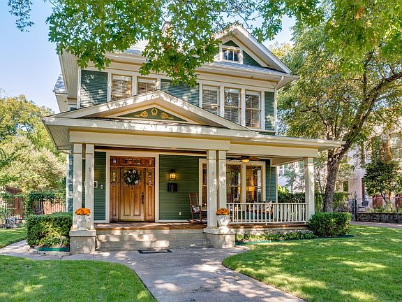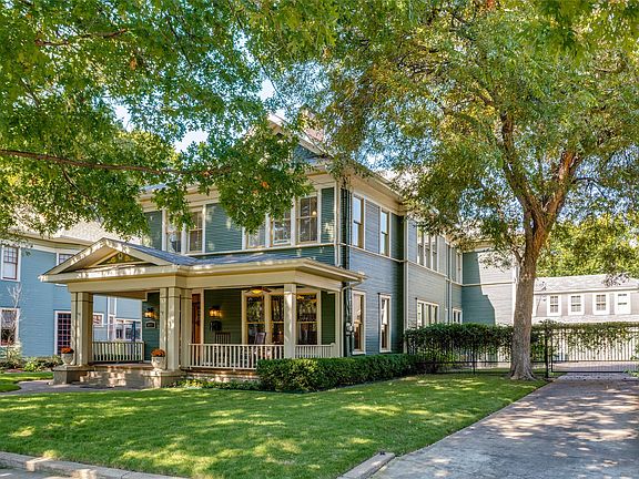 Meticulously maintained Prairie located in the Peak’s Suburban Addition Historic District. This architectural gem stands as a testament to timeless elegance and thoughtful preservation, nestled amidst a canopy of mature trees that lend both shade and serenity to its distinguished setting. The residence exudes an inviting charm that harmoniously blends the stately grandeur of early twentieth-century design with the comforts of modern living. Every detail, from the manicured landscaping to the carefully preserved exterior, signals a deep respect for the home’s heritage and its storied place within the vibrant fabric of Old East Dallas. The house was built circa 1905 by renowned Dallas architect Otto Lang for himself and his family. Upon entering the airy entryway, you are greeted by the charm of a home from a bygone era. The open formal areas and second living space on the first floor flow seamlessly into one another, encouraging social interaction and enhancing the sense of spaciousness. The large eat-in kitchen opens onto a wonderful covered porch, further increasing the entertainment experience. Additionally, a bonus bedroom with a full bath is tucked away, providing a convenient guest getaway. The second floor boasts a third living area filled with natural light. The primary bedroom offers a sitting area, a large walk-in closet, and an ensuite bath, creating the perfect retreat. There are also two additional bedrooms and an extra bonus room for added flexibility. A 3 car garage with quarters ,500 sq ft punctuates the backyard. The covered front porch is ideal for gathering and experiencing the beauty, history, and sense of community that this Old East Dallas neighborhood offers. Located just minutes from Lakewood Shopping Center and Lower Greenville, with easy access to White Rock Lake, Santa Fe Trail, Downtown, and the Arts District. The City of Dallas Historic Preservation Tax Incentive has been applied for and will transfer with the property.