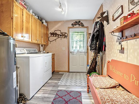 Welcome to your private Pine Lake retreat. This one-level, south-facing lake home was built in 2001 and sits on an incredible lot with 85 feet of sandy shoreline, perfect for swimming, relaxing, and soaking in the views. Inside, you'll find an open concept layout filled with natural light, a spacious primary suite, and a cozy den with a walkout to the lakefront deck. Custom metal siding, geothermal heating, and a newer split A/C unit provide comfort and efficiency year-round. The 30x40 garage and shop is a dream, complete with heat, a dedicated work area, and plenty of storage. Whether you're seeking a year-round home or the ultimate getaway, this is one of the best lakefront opportunities around.