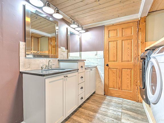 Nestled on a generous 2.25-acre corner lot, this country property offers an abundance of space both inside and out. With its paved road access and drive, this home combines convenience with rural charm. Step into this welcoming home, which features a cozy wood fireplace. The heart of the home is the expansive kitchen, complete with an island, stainless steel appliances, and plentiful cabinet space. Adjacent to this, you'll find a comfortable living room with recently installed carpet. The home's layout includes a luxurious full bathroom complete with a relaxing soaker tub, a separate large tiled walk-in shower, and a double sink vanity. For added convenience, you'll find main level laundry area, an additional half bathroom, as well as three well-proportioned bedrooms. A bonus fourth bedroom upstairs offers the perfect space for a home office or hobby room. Step outside to discover a spacious open yard ideal for outdoor activities. Charming apple trees dot the landscape, and a small fenced area provides a perfect spot for pets or gardening. A deck connects the house to the garage, seamlessly blending indoor and outdoor living. For those needing ample storage or workspace, this property doesn't disappoint. It features a 24' x 24' garage with partial interior finishing. Additionally, a massive 30' x 80' pole building has cement flooring, electrical hookups, and large doors at both ends - perfect for housing tractors, toys, or equipment. Contact your favorite realtor today to experience the perfect blend of country living and modern comfort in this versatile property!