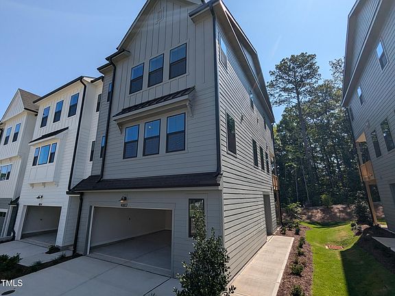 MOVE IN READY! Welcome to this exquisite luxury townhome, an end unit that epitomizes sophistication and convenience. Step into a realm of elegance with high-end finishes including quartz countertops, luxury vinyl plank flooring, and gleaming hardwood stairs that beckon you upwards. Spanning across four spacious bedrooms, this townhome offers ample space for both relaxation and productivity with a pocket office for at home work or privacy when on the computer. Imagine waking up to the serene views of mature trees from your private deck and patio, creating a tranquil oasis right at your doorstep. A two-car garage provides not only secure parking but also additional storage space, Ring doorbell and Wifi keypad deadbolt, ensuring both practicality and comfort. Situated conveniently near I-40 and US 70, this residence boasts easy access to shopping, dining, and entertainment, promising a lifestyle of effortless indulgence. Discover the perfect blend of luxury and location in this meticulously crafted townhome, where every detail is designed to elevate your living experience to new heights.