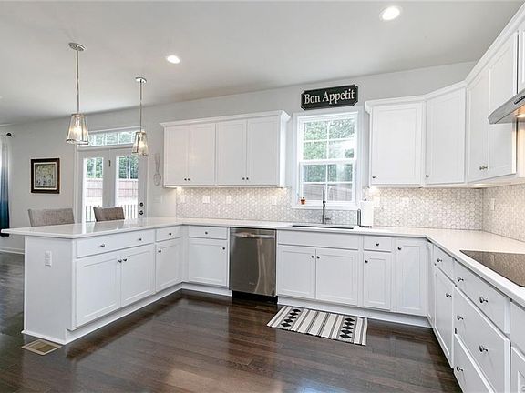 You are going to LOVE this MOVE-IN READY 4 bed, 2.5 bath home with special features that include HARDWOOD floors, QUARTZ countertops, CUSTOM STORAGE closets and a FENCED-IN backyard! Enter this beauty and be welcomed first by the BRIGHT and elegant 2-story foyer. To your right, you will find your formal Dining Room with French doors, and as you venture back you'll come to the open Great Room and Kitchen. Your Kitchen features quartz countertops, a breakfast bar, stainless steel appliances, a beautiful marble backsplash and a CUSTOM pantry with shelving & storage drawers! The Great Room overlooks your spacious backyard and has built-in speakers! Continue the tour upstairs where you will find a Master Suite made for relaxing with a soaking tub and tile shower! The custom designed closet is a storage lover's DREAM with shoe racks, drawers and a CHANDELIER! The additional bedrooms are spaciously laid out with large closets and are all wired for future ceiling fans! Other features you are sure to LOVE include TONS of natural light, an irrigation system and a cul-de-sac lot that backs up to private & lush greenery! Come inside and fall in LOVE for yourself!