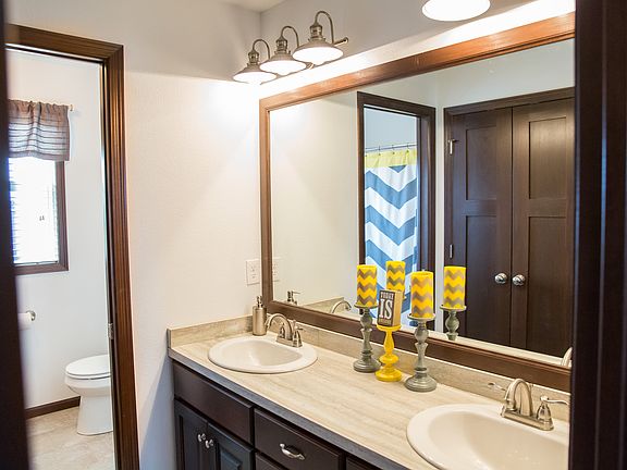 Beautiful Home with 4 bedrooms all on the upper level with the laundry room and additional bathroom The master suite has a vaulted ceiling with a connected large bathroom with deep soaker tub, a walk in tile shower and a separate toilet area behind a pocket door. The large master closet is fit for a queen and king. Each additional bedroom has ample closet space. The large laundry room has built in shelving and is near all the bedrooms The "kids" bathroom has double sinks and a pocket door to separate the toilet and shower area. The hallways and stairways are all extra wide. This home is filled with tons of natural light with large windows throughout and custom blinds on most windows The main floor has a very open concept. As you enter into the entry way there is a den off to the left that could be used as a 2nd living room, play room, formal dining room or office. The living room features a Stone fireplace surrounded by floating shelving and built in cabinetry. 3 Large Beautiful large windows look out onto a very open area. The kitchen has Slate appliances, a microwave drawer, hood vent ,gas range. Tile back splash. And a large eat at island. Beside the kitchen is a great office area and a great place for kids to do homework. Behind the office area is a walk in pantry On the opposite side of the kitchen there is a great side mud room with built in storage and coat hooks and a large walk in closet. Also located in the mudroom is a 1/2 bathroom This home is all in shades of Gray and darker wood accents
