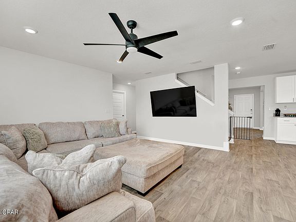 Beautiful 2021 build in Titus Park features an open floor plan with granite countertops, large kitchen island, and plenty of cabinet space. Spacious master bedroom features an en suite with double vanity, soaking tub, separate walk-in shower, and large walk-in closet. This home has one ground floor bedroom, with the remaining 4 upstairs. There are living areas on both the upper level and the main floor, with additional flex room at the entry of home. This home sits on an extended corner lot, which provides plenty of yard space for children or pets. This home has everything you need including solar panels, irrigation, and fully fenced yard. This perfect location provides close access to community pool and shopping being currently built! The home also has solar panels, which will be paid off at closing. Power bills non-existent! All measurements are APPROX. Please confirm if important. Solar Balance is around 34k, and can be assumed by qualified buyer.
