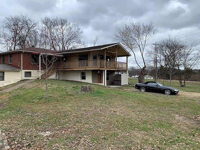 So much space!!! Brick basement ranch on corner lot with fenced in backyard. Side entrance leads to wrap around deck to covered deck at front of home with covered patio below. 2 spacious family rooms with fireplaces on both levels. Knotty pine den & separate kitchen up. Dining open to family room up & separate dining beside kitchen down. Primary bedroom with full bath & large closet up. Basement level offers 4 bedrooms, 1 bath, plus extra room for a second den or office. 1 1/2 garage spaces, approximately six parking spaces on two driveways. Deck on back.