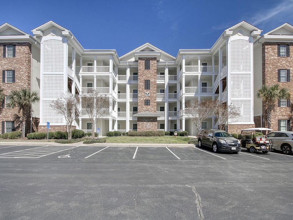 Welcome to Magnolia Pointe, where luxurious coastal living awaits in this stunning 3-bedroom, 2-bathroom condo. Situated on the 2nd level with common elevator service, this end unit offers approximately 1,400 square feet of beautifully appointed space. The primary bedroom boasts ample space and an ensuite bathroom with a generous shower and bath combo, while two guest bedrooms offer privacy and comfort. Step onto the covered balcony to enjoy serene views of one of the community’s most picturesque lakes, perfect for relaxing on breezy summer nights. Magnolia Pointe itself offers an array of amenities, including 7 community pools, 2 clubhouses, walking trails, and lakes, creating a true resort-like atmosphere. Conveniently located just minutes from shopping, dining, and world-class golf courses, with Highway 31 nearby for easy travel. The beach is also just 1.5 miles away, providing the perfect balance of relaxation and entertainment. Whether you're seeking a primary residence, a second home, or an investment opportunity, this condo caters to all. Monthly HOA fees cover essential services like water/sewer, trash collection, cable, internet, and pest control, ensuring a hassle-free lifestyle. Experience luxury living in the heart of Myrtle Beach – schedule your showing today and make Magnolia Pointe your new home.