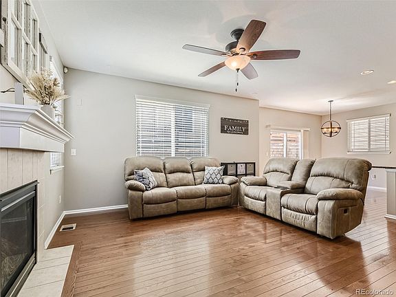 Move-In ready 2-Story with , 4 bedrooms, 4 bathrooms, and a 2 car garage. Light & bright, fresh neutral colors, open floor plan. Spacious living room ensures comfort with a gas fireplace. Seamless transition to the dining area. Your chef will be happy in this incredible kitchen with granite countertops, ample island with breakfast bar, plentiful cabinets & appliances included. Entertaining is made easy and enjoyable in this well manicured home. Stunning hard woods throughout the main floor and loads of windows for natural light. Thoughtfully placed half bath adds ease for guests. Upstairs features your primary retreat w/ private five piece bath, double sinks, soaker tub, sizable shower and walk-in closet; it is a tranquil sanctuary where you can craft your personal oasis. Upstairs features full bath, two additional bedrooms, both with fans, one with a walk in closet. Be productive in the loft office space, an ideal environment to conquer any work projects or homework. Convenient upstairs laundry. Hosting guests is a delight, with a full-size bedroom and 3/4 bathroom thoughtfully incorporated to ensure their comfort in the finished basement. The family room is perfect for personal recreation with endless possibilities. Generous storage. Your pets will be happy in this sizable back yard. Coveted Cherry Creek 5 school district. Close to parks & trails. Reasonable HOA. Don't miss the chance to make this stunning home your very own. BRAND NEW ROOF replaced Sept 18th. This house has pride of ownership and well maintained. A/C replaced '21. Interior paint '21. New carpet '21. Finished basement with bedroom and 3/4 bathroom '21.