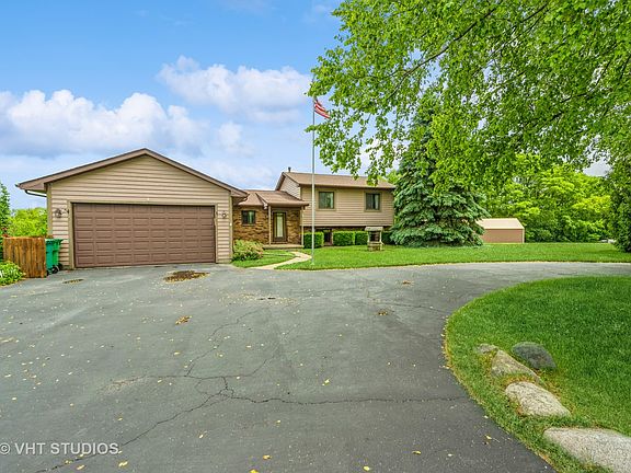 6.36 ACRES, 60x40 Pole Barn, Pond, Johnsburg Schools, Tri-Level home with 3 full baths has walkout lower level plus Sub-Basement, Enjoy your pond and you can have 3 Horses on property if you wish! , Zoned R1C, The Prairie Path Trail is at the edge of the property for miles of walking/biking/riding. Home was built as a 3 bedroom, current seller used it as a two bedroom. There are 3 full bathrooms and the lower level walks out ot a covered patio overlooking the yard and woods. There is a paved circular drive to the home and a gravel drive to the barn. Come and check it out. A Quick Close is possible.