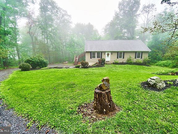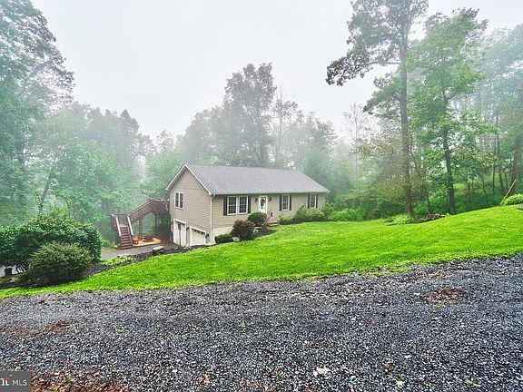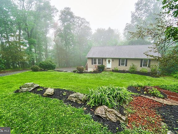 Cute & Cozy Rambler with finished basement. Situated on an acre lot in Blue Mountain Estates with tree lined views. Main level features open floor plan with living room, dining room, and country kitchen. Main level living areas feature upgraded flooring. Spacious eat-in kitchen with upgraded counter tops, stainless steel appliances, and x-large island are ideal for entertaining! Sliding glass door off dining area leads to private deck with stairs leading down to backyard. Primary bedroom with private bathroom. Two secondary bedrooms and full bathroom complete the main level living spaces. Fully finished walk out basement with expansive rec room, full bathroom, and storage area. Two car side loading garage is perfect for cars and enough room for storage! Move-in ready! PLEASE CALL ALT. AGENT WITH QUESTIONS.