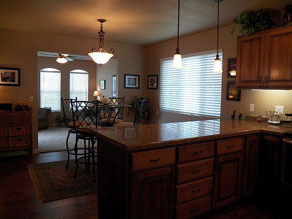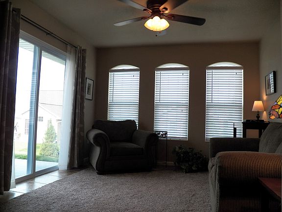 Beautiful & spacious condo w/many upgrades! Open floor plan w/sunroom, beautiful kitchen, & breakfast nook, spacious master suite, walk-in closets, finished garage w/lots of storage above, patio off of sunroom & more! No steps, low maintenance w/low utilities & condo dues of $40/mo include lawn maintenance & snow removal. Sprinkler system.