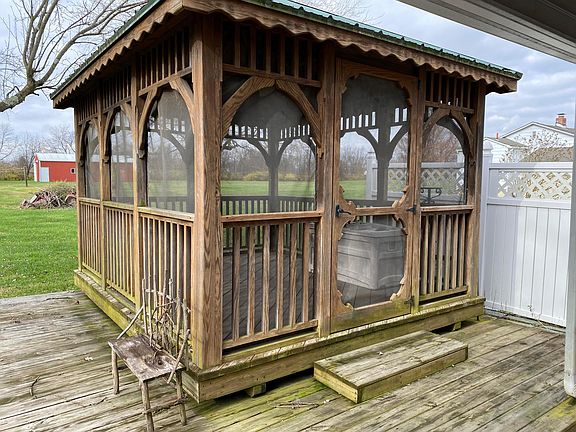 Charming cape cod on 5.5 acres. First floor bedroom with attached bathroom. Large living room/dining room area and eating space in kitchen. Rec room in the full basement. Extra gas stove in basement for canning or cooking. Gazebo has snap in screens to enjoy the outdoors bug free. Detached 26x30 garage with work bench. 30x48 Pole barn has electric. Basement just professionally waterproofed with lifetime guarantee. This property has so much to offer!!