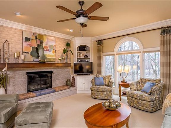 This stately 2 story brick home is situated on an exceptional heavily treed lot affording privacy and serenity with a small stream and bridge. Other features include an irrigation system, beautiful alder wood paneled office , 9 foot ceilings, replacement windows, and a finished walk out basement. Kitchen and master bath both have granite counters. Gorgeous updated master bath.