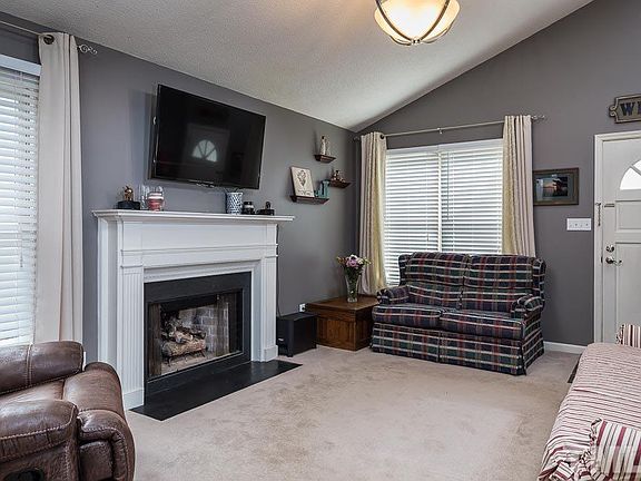 Cozy 2 bedroom, 2 bathroom ranch home with garage in Hedingham community. Open living space with vaulted ceiling, gas fireplace, spacious kitchen countertops, and dining area with deck access. Fenced in yard and privacy wall on deck. Garage has shelving and cabinets for storage. New roof in 2015. Home inspection already performed and available to buyers. Enjoy community pool, tennis and golf with low HOA fee.