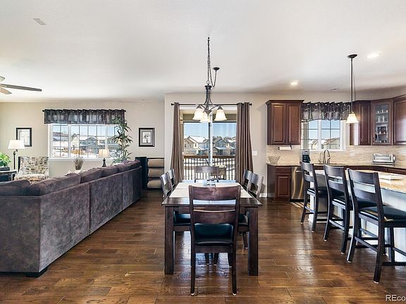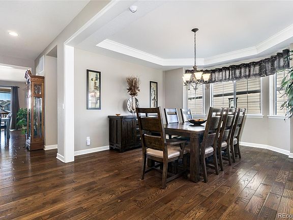 Recently appraised for $650K. Better than paying for New Construction! Updated Copper-leaf 2-story with $60K in recent updates including a new roof, dish washer, garage shelves, Exterior paint, Refinished deck and Shades. 9 year warranty on exterior Sherwin Williams paint. Includes a new Alarm system w/ Video, 5 ceiling fans, and literally tons of meticulous landscaping rocks, trees, bushes and flowers. Concrete driveway and new front walkway to the covered patio/entrance lead guests into this sparkling clean, pet free home. Upon entering, the first thing you will notice is the lavish hand-scraped hardwood flooring throughout the main floor. The property boasts many amenities and updates like: Double vanities in the master bath and main bathroom(s) upstairs. Tons of kitchen cabinets and an extra-large walk-in Pantry make this kitchen fully functional for all. The laundry located upstairs acts as a great convenience. The new 6th bedroom, carpeting, and paint in the walkout basement are inviting for guests or extended family. This Immaculate home is located in Cherry Creek-5 schools and is walking distance to Eagle Crest High School. Included in the HOAs is clubhouse access, tennis courts and a pool. This home looks and feels like a hotel with its open living concepts including a massive granite kitchen counter and tons of extra space for entertaining. The large covered balcony looks west over the beautiful grassy open spaces. Did I mention the over-sized Tandem garage fits three cars with room to spare. New landscaping and a split rail fence are the only things separating the back yard from natural grassy openness. The Family room includes a massive wall of west facing windows and a lovely Gas log fireplace. A Beautiful home for entertaining and quiet nights on the Balcony. Agents Show-and-Sell this listing.