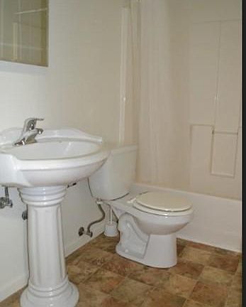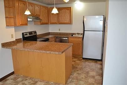 Ground level, all one floor. Rent does not include electric, water or sewage. Equipped kitchen includes dishwasher, stove, refrigerator. Off street parking and on-site laundry. NO PETS. Application required for every adult 18 and older. Must have documented income of at least 3x rent. Credit and background required. $20 application fee per adult. WE NEVER ASK FOR DEPOSITS BEFORE MEETING IN PERSON OR MAIL KEYS. DON'T BE SCAMMED.