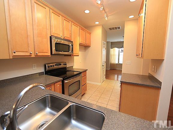 Location, Location...Perfectly maintained 2BR townhome close to 440 & 540, Crabtree, Brier Creek, restaurants, Target, movie theater. Master and 2nd BR with private baths. Huge walk-in shower in Master Bath added 2017. New lighting, toilets, fixtures and smoke detectors throughout. All NEW HVAC 2019. Beautiful hardwood floors down w/tile in Kitchen, solid surface counters and all stainless appliances. Private in back w/storage. Low HOA dues includes pool, clubhouse and fitness center. Washer/Dryer convey.