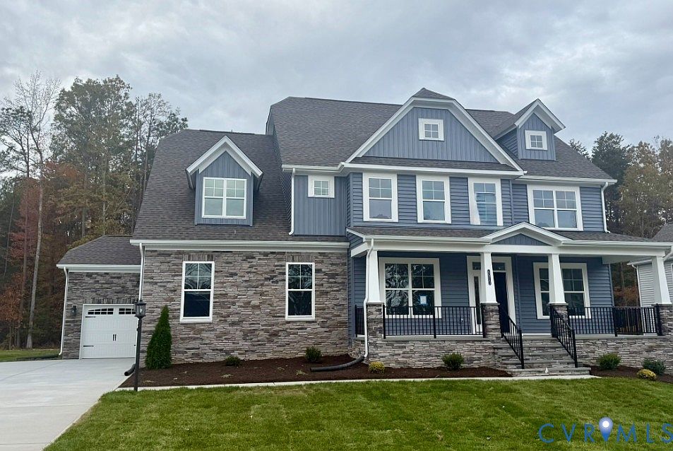 This home is MOVE-IN READY! This home is MOVE-IN READY! The Roanoke is a two-story home featuring five bedrooms, 4.5 baths, and a side-load garage. The main living areas on the first floor showcase the stunning light natural EVP flooring. The first floor offers open-concept living, featuring a formal dining room and home office with French doors directly off of the foyer, a spacious kitchen with quartz countertops, an island, pantry, stainless steel appliances, tile backsplash, and LED recessed lighting open to an adjoining dining area, and the inviting family room features a cozy gas fireplace and a stunning oversized window that fills the space with natural light. A guest suite with a 5' shower, bath accessories, and tile surround. A powder room for guests, a utility garage, and a full-screen rear porch complete the first floor. On the second floor, you’ll find the primary bedroom featuring a dual walk-in closet and a LUXURY bath with a soaking tub, walk-in shower, semi-frameless shower door, bath accessories, tile surround, separate vanities with light fixtures, and carpet flooring. Bedrooms 2 and 3 with Jack and Jill bath and walk-in closet. Bedroom 4 has carpet flooring, a walk-in closet, and direct access to the hall bath. A laundry area and a bonus room complete the second floor. Nestled in the heart of Moseley, Mount Hermon offers thoughtfully designed floor plans, all with side-load garages only minutes from area shopping, dining, and recreation.
