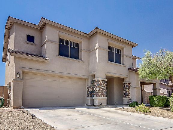 IMMACULATE MOVE IN READY HOME!5 bedrooms,2.5 baths,3 CAR tandem garage,Formal living & dining,breakfast bar,breakfast nook,family room,LOFT,upstairs laundry,large walk-in closets,PLENTY of storage areas.2 gates on each side of home,6ft & RV GATE,Covered back patio,HUGE grassy backyard with professionally laid pavers,w/plenty of room left for a pool!9FT flat ceilings,spacious kitchen features upgraded cherry wood cabinets,granite counters,tile floors.Master is located upstairs,master bath features walk in closet,sep tub,& shower & dbl sinks. NEIGHBORHOOD K-8 Rogers Ranch School within walking distance,close to shopping,dining,& schools.Great Condition,normal sale,GREAT VALUE!ALL APPLIANCES ARE STAYING.INCLUDING WASHER AND DRYER.BLINDS & CEILING FANS THROUGHOUT,SUNSCREENS & SOFT WATER LOOP.