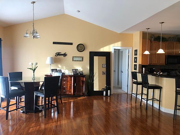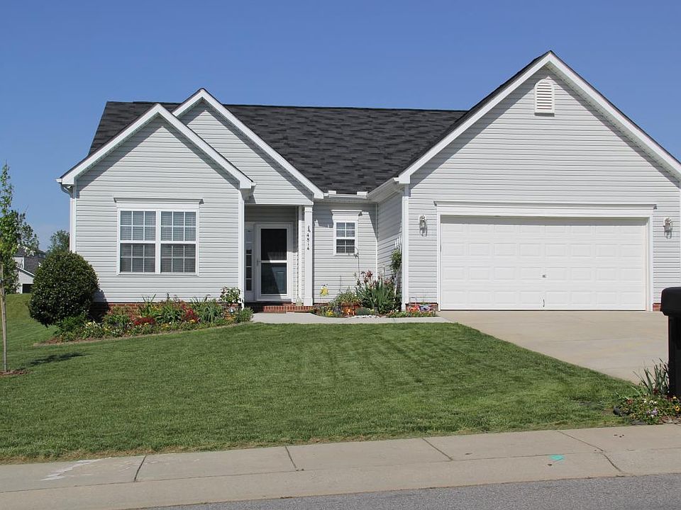 This is a split floor plan , open concept ranch house featuring cathedral ceilings, granite counters, gas fireplace and storage space galore. Flooring include tile, laminate and carpet in bedrooms. An oversized patio with a retractable awning and a 10x12 storage shed complete the outdoor living space. Two car garage with door opener. Unit comes with large refrigerator and many other finishing touches like shutters, curtain rods and track shelving, W/D hook-ups. Pet Deposit non refundable $500 Trash service included.