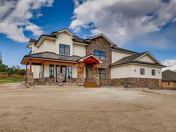 Phenomenal opportunity to enjoy the Colorado lifestyle in an unparalleled home in the heart of Pradera. The epitome of simple elegance and purposeful planning, this stunning home is designed for comfort and functionality. The dramatic, cedar lined, wraparound porch with exposed timbers leads into a welcoming entrance. Upon entering, your eye is immediately drawn to the open floor plan with bountiful, oversized picture windows boasting an abundance of natural light. Quality finishes throughout including hickory hardwood floors, tasteful oil rubbed bronze and antique brass accents, large subway tiles in the bathrooms and quality French doors leading to the expansive ¾ acre yard. The exquisite chefâs kitchen is ideal for entertaining with quartz counters, stainless steel appliances, double ovens, 6-burner gas range, walk-in pantry and large kitchen island that opens to the family room with floor-to-ceiling brick fireplace. Enjoy the spacious master suite with the massive 5-piece bathroom featuring a soaking tub and large walk-in closet while taking in the breathtaking views of the mountains beyond. Conveniently nestled in the middle of a golf community with an extensive trail system that winds throughout the foothills. Beautiful place to call home!