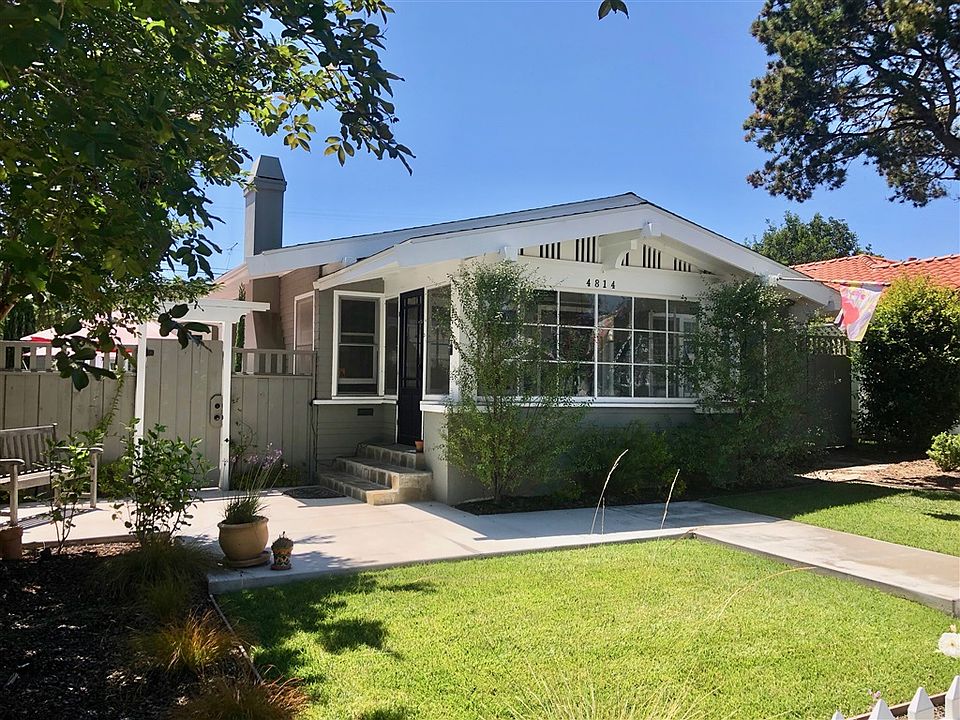 Craftsman! Absolute move in ready single story in extraordinary condition. From the lovely enclosed porch you walk into a large formal LR and DR w/ original gumwood and built ins. Remodeled kitchen with eat in nook, chef quality appliances and beautiful natural light. Two master bedrooms (one currently used as a family room) with ensuite baths and superbly remodeled. Rear yard has a pool and spa, two patio areas and privacy! The two car garage is converted to a studio but could be reversed (alley access).