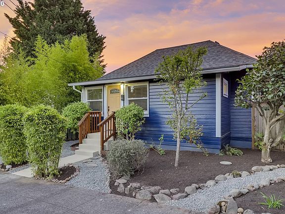 Light, bright + freshly painted 1908 Alberta cottage half a block South of happening Alberta District. Grab dinner or an art show on Alberta or live music at the Kennedy School. Two bedrooms + bath w/extra den off master. Original oak wood floors + new vintage-style vinyl floors. Backyard freshly covered in organic mulch plus deck + detached garage. Large basement w/laundry area + is plumbed for second bathroom. Newer roof + windows. Incredibly low property taxes!
