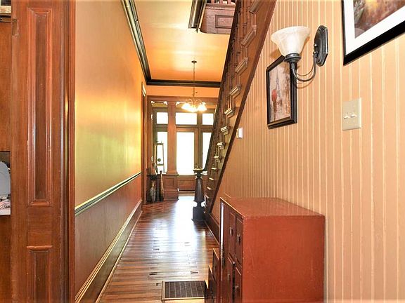 - Ceiling Fan(s), High Ceilings, Eat-in Kitchen, Bookcases, Entrance Foyer, Natural Woodwork