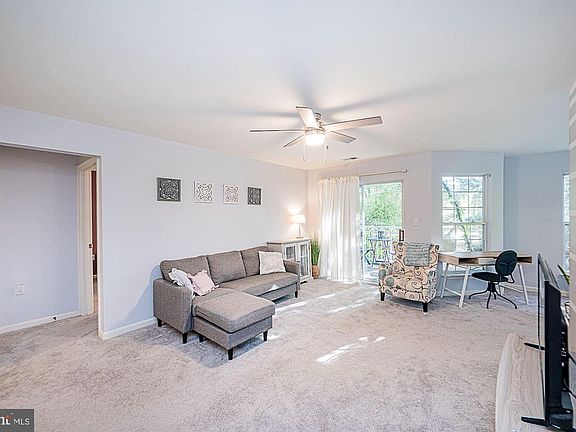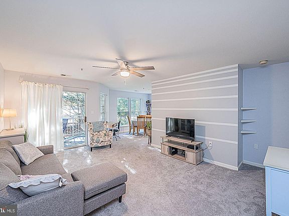 Bright and airy ground/entry level condominium with no steps featuring two bedrooms, two bathrooms and conveniently close to everything you need! Boasting sun drenched oversized windows, plush carpeting and sizable rooms, this corner unit is surrounded by trees creating the ultimate paradise. Kick your feet up, relax and watch your favorite shows in the spacious living room adorned with a neutral color palette, a ceiling fan, accent wall, and sliding glass doors to the private balcony. The dining room features sunny windows and space for any size table, making entertaining easy. Prepare your favorite chef inspired meals in the kitchen equipped with stainless steel appliances, tile backsplash, accent cabinetry and gas cooking. Tranquility awaits you in the primary bedroom suite complete with double closets and a private bathroom with a large vanity and tub shower. The second bedroom has a bright bay window, a generous closet and an attached second bathroom with a glass enclosed tile shower. Enjoy lounging on the private balcony overlooking the trees. The main entrance door is always locked and an intercom system connects to the unit. HVAC system replaced in 2020.