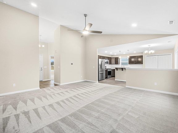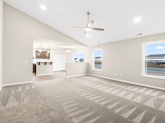 Welcome to 4814 Windrow Way, a stunning home in the desirable Blackthorne Classic Series by Kiracofe Homes. Situated on a serene pond, this beautifully crafted 1,622-square-foot home offers a perfect blend of modern style, comfort, and peaceful surroundings. With 3 spacious bedrooms and 2 full bathrooms, this home is designed to accommodate your lifestyle with both functionality and elegance. The open-concept layout invites you into a bright and airy living space, perfect for both relaxing and entertaining. The heart of the home is the chef-inspired kitchen, featuring a large island with quartz countertops, stainless steel appliances, and a French door refrigerator with a water and ice dispenser on the door. A spacious walk-in pantry adds convenient storage, keeping the kitchen organized and efficient. The luxurious master suite is a private retreat with the master bathroom including a walk-in shower, a double vanity with quartz countertops, and an impressive his-and-hers walk-in closet with plenty of room for all your wardrobe essentials. Each of the additional two bedrooms features its own large walk-in closet, offering plenty of storage and personal space for family members or guests. The split-bedroom floor plan ensures privacy for the master suite while keeping the secondary bedrooms separate and comfortable. Energy efficiency is a key feature of this home, with spray foam insulation applied to the footers and exterior walls, helping to lower utility costs while maintaining a comfortable indoor climate year-round. Enjoy the beauty of nature right in your backyard with peaceful views of the pond, creating a tranquil setting for morning coffee or evening relaxation. Other highlights include tongue-and-groove luxury vinyl plank (LVP) flooring in high-traffic areas, plush carpeting in the bedrooms, and a 1-year builder warranty, along with a 2/10 extended warranty for peace of mind. Whether you're looking for a spacious family home or a peaceful retreat with modern amenities, 4814 Windrow Way offers it all—stunning views, luxurious finishes, and a comfortable, energy-efficient design. Come see it today and experience the tranquility of pond-side living!