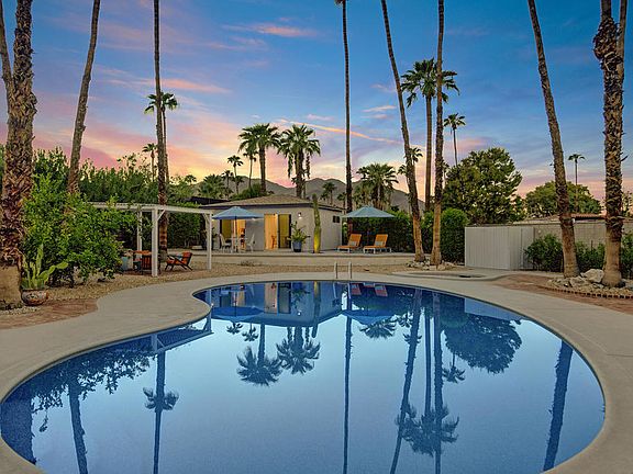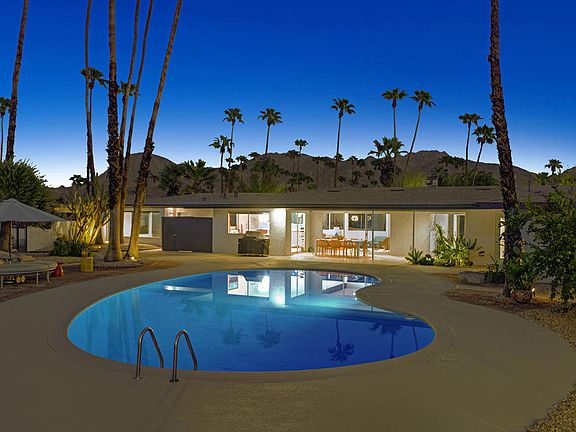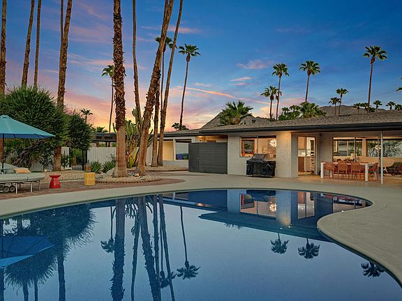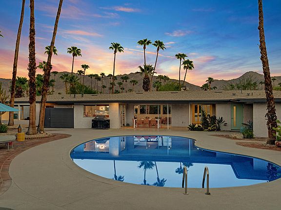 Located in the Silver Spur Ranch area of South Palm Desert, developed in the 1950s and was home to many celebrities, including Bing Crosby and Randolph Scott. A Rare offering for MCM California Ranch property on an oversized lot with 180 mountain views. The Main house consists of wall-to-wall ceramic flooring and large windows boasting natural light. High-end kitchen appliances, including Sub-Zero and Viking. Open floor plan featuring two living rooms. The secondary living room is currently the media room and has a private bathroom. The Primary Bedroom with direct pool access, fantastic mountain views, and an ensuite bathroom. The guest house was recently added fully permitted, with a living room, private bedroom overlooking the pool, and kitchen. All the pool equipment was just replaced and pulled above ground. The seller has created a unique property while updating the property in still maintaining the Classic Mid-Century feel in the highly south-after Silver Spur Ranch Community of South Palm Desert.