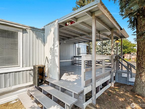 Harvest Manor Mobile Home Park ~ This 3 bedroom, 2 bath home offers 924 sq. ft. of comfortable living space. Features include a durable metal roof, low-maintenance metal exterior, and vinyl flooring throughout. The kitchen is equipped with a stove, range, and microwave. The primary suite includes its own bath for convenience. Enjoy the outdoor patio and deck—perfect for relaxing or entertaining. Home is vacant and ready for its new owner!