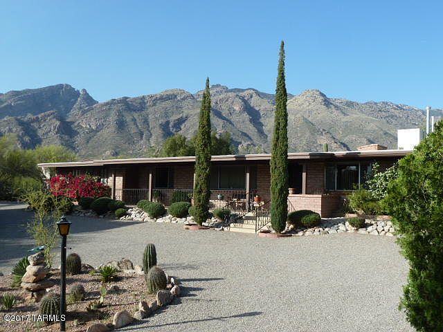 Nicely updated Mid-Century Modern Catalina Foothills Home on nearly one acre with majestic mountain views, just below Finger Rock. Quiet Cul-da-sac.Convenient access in and out of the subdivision. 5 minute drive to all your shopping needs and only 8 minutes to La Encantada Mall and AJ's Market. Homeowner's association includes huge community center with olympic size pool, basketball court and tennis courts. Enchanting and completely walled back yard and pool area as well as side yard with citrus orchard and a greenhouse/potting shed. Dual cooling with central AC and mastercool evaportive cooling. Plenty of room for guest parking. Nice size garage with large attached workshop. Great home for entertaining your friends and guests.