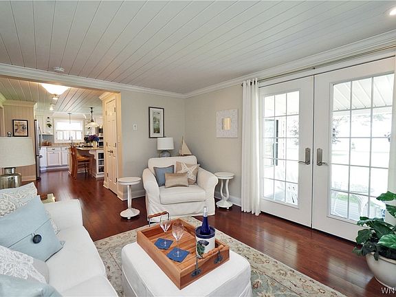 Welcome to 4815 E Lake Rd and come enjoy the beautiful sunsets year round. Totally gutted and new addition added on (2013) to expand the living space. This classy cottage-style home has all the beauty inside as it does the beauty of the waterfront views. Kitchen boasts custom soft close cabinets, walk-in pantry, quartz counters, eat-in island w/Jenn Air cooktop, fully applianced w/ built in Oven/Microwave & stainless fridge. Hickory floors throughout the house lead into the master suite with gas FP & a walk in closet you have to see. Master bath w/ soaking tub, tiled shower w/ rain shower and adjustable shower head & huge vanity area. Relax in the living room next to the 2nd gas FP w/ stone inlay that leads out the french door to the Trex deck overlooking beautiful Lake Ontario. 50 ft of lake frontage has had extensive break wall work done & metal access steps to lake. 200 Amp panel w/ generator hookup, new roof on garage/shed, Tankless HWT, Radiant floor heating, sunroom, massive laundry/mudroom area w/ plenty of storage, Shaker style vinyl siding. Close to Marinas & Yacht clubs in Wilson & Olcott.