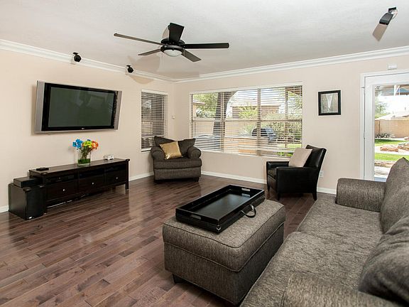 Great home on an amazing lot w/super curb appeal located on desirable East side of Tatum! Completely Remodeled in 2014. Unique Solid Hardwood Flooring in all living areas on both levels. New Carpeting in all bedrooms. Marble Flooring in Powder Room & Laundry Area. Stunning Kitchen with Custom Cabinetry, High End Granite, Georgeous Backsplash, Granite Sink & New Stainless Appliances. Huge Master Suite with Beautiful Bath & Walk In Closet. Crown Molding and New Baseboards added. Plantation Shutters. Livng Room Wired for Surround. 6 New Ceiling Fans installed including 2 on covered patio complete with Commercial Misting System and Custom, Tracked Patio Screens. New Exterior Sun Screens. Exterior Painted in 2015. New Garage Door in 2015. Lush oversized south facing back yard with Fire Pit and Built in Grill. Walk to Desert Ridge Mall, great dining, golf, easy fwy access. A+ Schools!