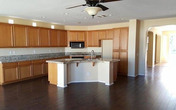 Beautiful home is made to entertain! It is situated in an end to end cul-de-sac. This single story home has a great entry to welcome guests, with formal living room. Neutral tones chosen to match your taste, and deep Hardwood floors throughout. The kitchen is HUGE with all the updates like Stainless Steel, Granite counter tops, granite Island with Seating, and it is all open to the entertainment room. You have a Spacious 3-car garage able to fit all your cars and tools. Double sinks in both full bathrooms, Garden tub in the master bath!