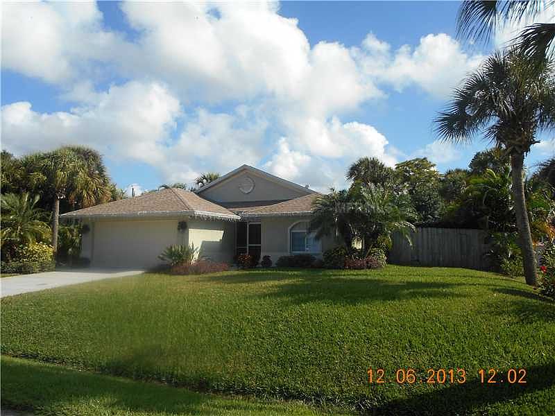 WOW! Fabulous home in desired location so close to all you need. This home has been well maintained. From your tiled screened front entry, you step into a spacious living area with volume ceilings. Two secondary bedrooms with their own bath are tucked away for added privacy. Bright, open kitchen has decorative plant shelves and breakfast bar. Eating area off kitchen overlooks large living space. There is even a den with french doors adding another room for added living space. Nice size master and bathroom that has large walk-in closet. An enclosed Florida room with sliders opens up to a large screened lanai area that is very private. Pavered fire pit area is great for entertaining in the private, fenced backyard area. This is place you will want to call home. Close to beaches, retail, dining and Florida fun. Move-in condition, well cared for. See today.