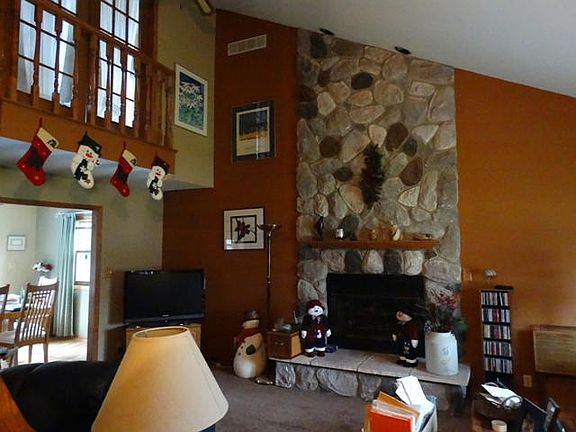 Spacious home- almost 2200 square feet- with many updates. Open kitchen with eat in dining area, patio doors to large deck that look out into a huge backyard. Living Room offers cathederal ceilings and gas fireplace with beautiful stone floor to ceiling. Large room currently being used as a office-could be a formal dining room offers french doors. Newer carpeting and flooring, roof replaced in 2006,newer hot water heater. Close/easy access to Milwaukee and Chicago.